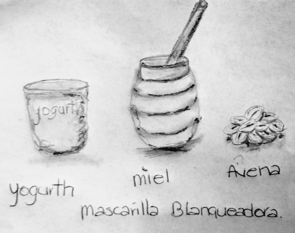 - Mascarilla Blanqueadora: 2 cucharaditas de yogurth natural, avena y 1cucharadita de miel, aplicar por 20 minutos. Migajón con leche y 1 cucharadita de miel, aplicar por 20 minutos.