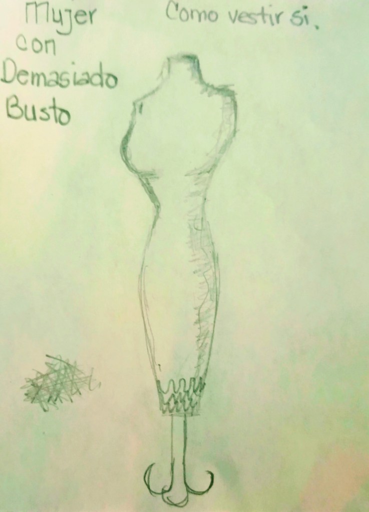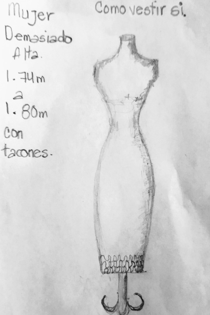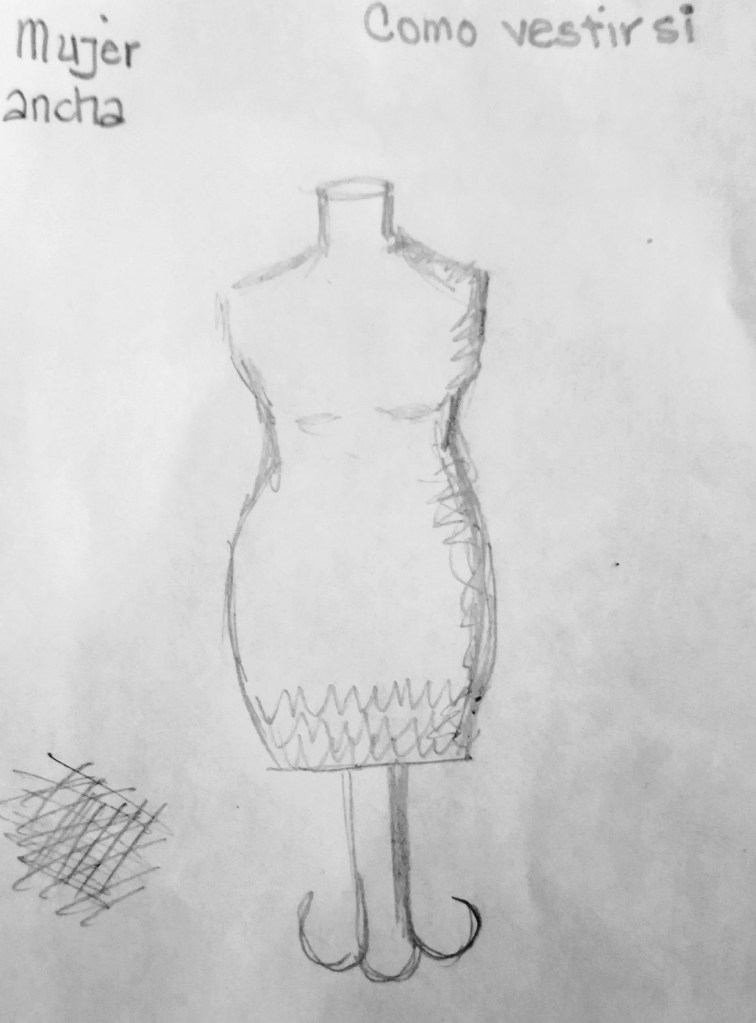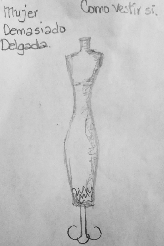 La silueta ancha se debe corregir para que no se vea más ancha aún, cuidar cada detalle. Aquí el objetivo es convertir la anchura en altura por medio de líneas verticales.