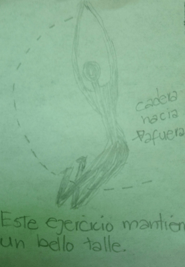 Arrodíllate en el suelo y que las rodillas estén bien juntas, levanta los brazos por encima de la cabeza y las manos juntas con la cadera derecha hacia afuera, vas a realizar los siguientes movimientos manteniendo la cadera hacia afuera, hacia arriba y hacia abajo, posteriormente hacia adelante y hacia atrás, manteniendo la espalda erguida lo más posible y los músculos del abdomen en completa tensión para mantener el equilibrio.