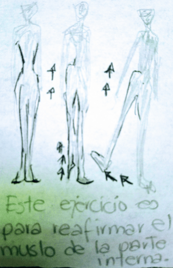 De pie, con los pies paralelos y el abdomen tenso. Levanta el talón del pie derecho alzando el hueso de la cadera del mismo lado, pero manteniendo derecha la espina dorsal sin doblar la rodilla, levanta los dedos de los pies y debe ser el movimiento muy despacio hacia afuera. Cuenta hasta seis y mantenlo a la mayor altura posible, no se te olvide contraer el muslo y luego regresar el pie muy despacio, realízalo unas cuatro veces de cada pierna.